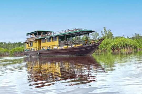 Ankunft am Flughafen von Pangkalanbun und Transfer nach Kumai, von wo aus Sie per Boot zur Rimba Lodge gelangen. Während der Fahrt beobachten Sie bereits Langnasen-Affen in den Baumwipfeln am Fluss. Abends leuchten Tausende von Glühwürmchen zwischen den Bäumen und die Geräusche des Dschungels lassen Sie gut schlafen.