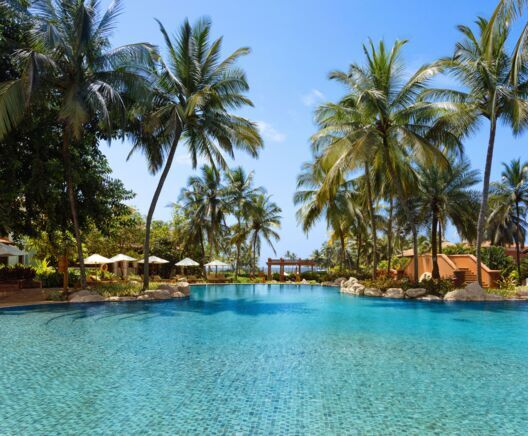 Un élégant héritage architectural indo-portugais niché dans un magnifique jardin tropical. Le vert vif des palmiers et les couleurs florissantes font de ce complexe une oasis de vacances extrêmement charmante.