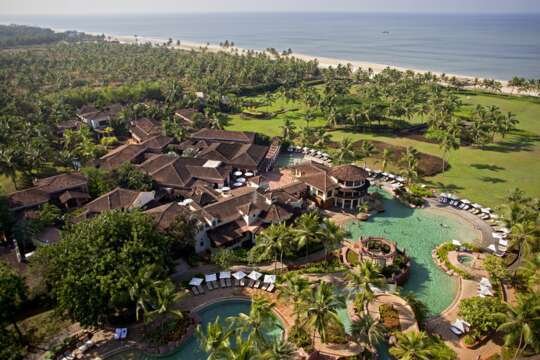 Niché entre les rizières et la mer, le resort se trouve à environ 45 minutes en voiture au sud de l'aéroport de Goa. Une promenade d'environ 250 mètres mène à la plage.
