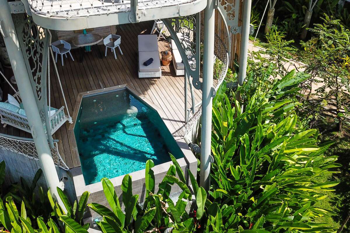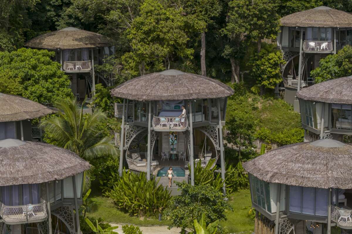 Les 31 maisons dans les arbres et villas de plage uniques en leur genre sont harmonieusement intégrées dans la nature tropicale. Un pont suspendu vous permet d'accéder à votre Tree House de deux étages et d'une superficie totale de 100m². En bas, un espace de vie ouvert avec une piscine privée, un hamac et un salon vous attend. Un escalier extérieur mène à la chambre à coucher climatisée avec fenêtres panoramiques et salle de bains. Ceux qui préfèrent avoir la mer à leur porte choisiront l'une des Beachfront Pool Villas (110m²), de plain-pied et de style, avec piscine à débordement et accès direct à la plage.
