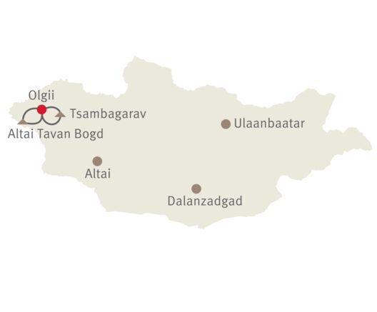 Die Reiseroute Altai Mountains hat ein leicht anderes Routing, ist aber ähnlich im Inhalt und gleich im Konzept. Start- und Endpunkt bleibt Ölgii.