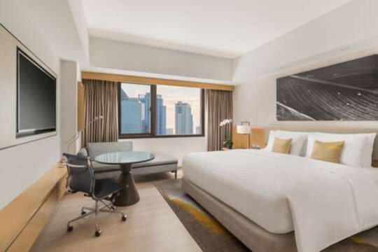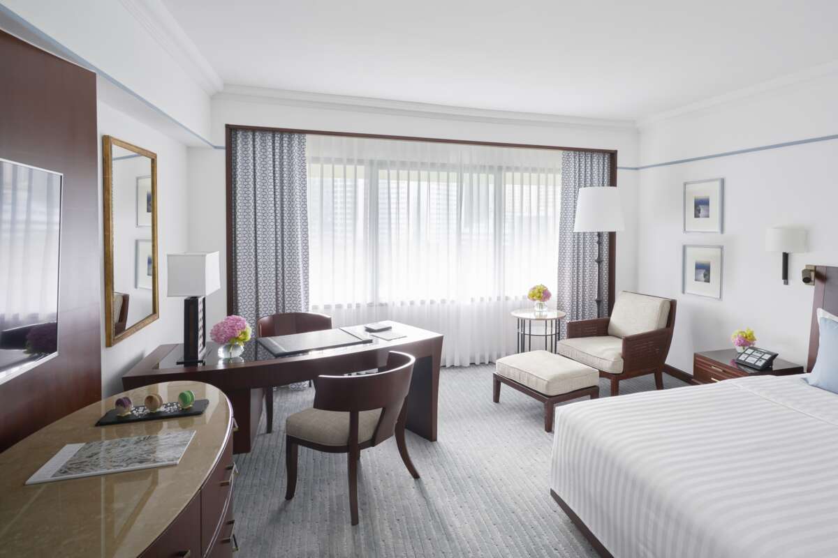 495 zeitlos-klassisch dekorierte Zimmer mit allen Annehmlichkeiten inkl. Bad mit Wanne und separater Duschkabine. Deluxe 37m² mit Stadtsicht, Grand Deluxe sind etwas geräumiger.
